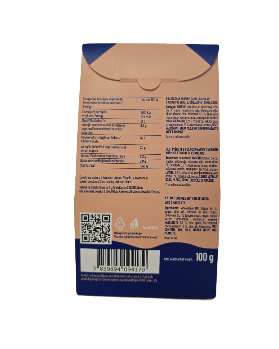 CJELOVITOG ZRNA, LJEŠNJACIMA I ČOKOLADOM 100g
